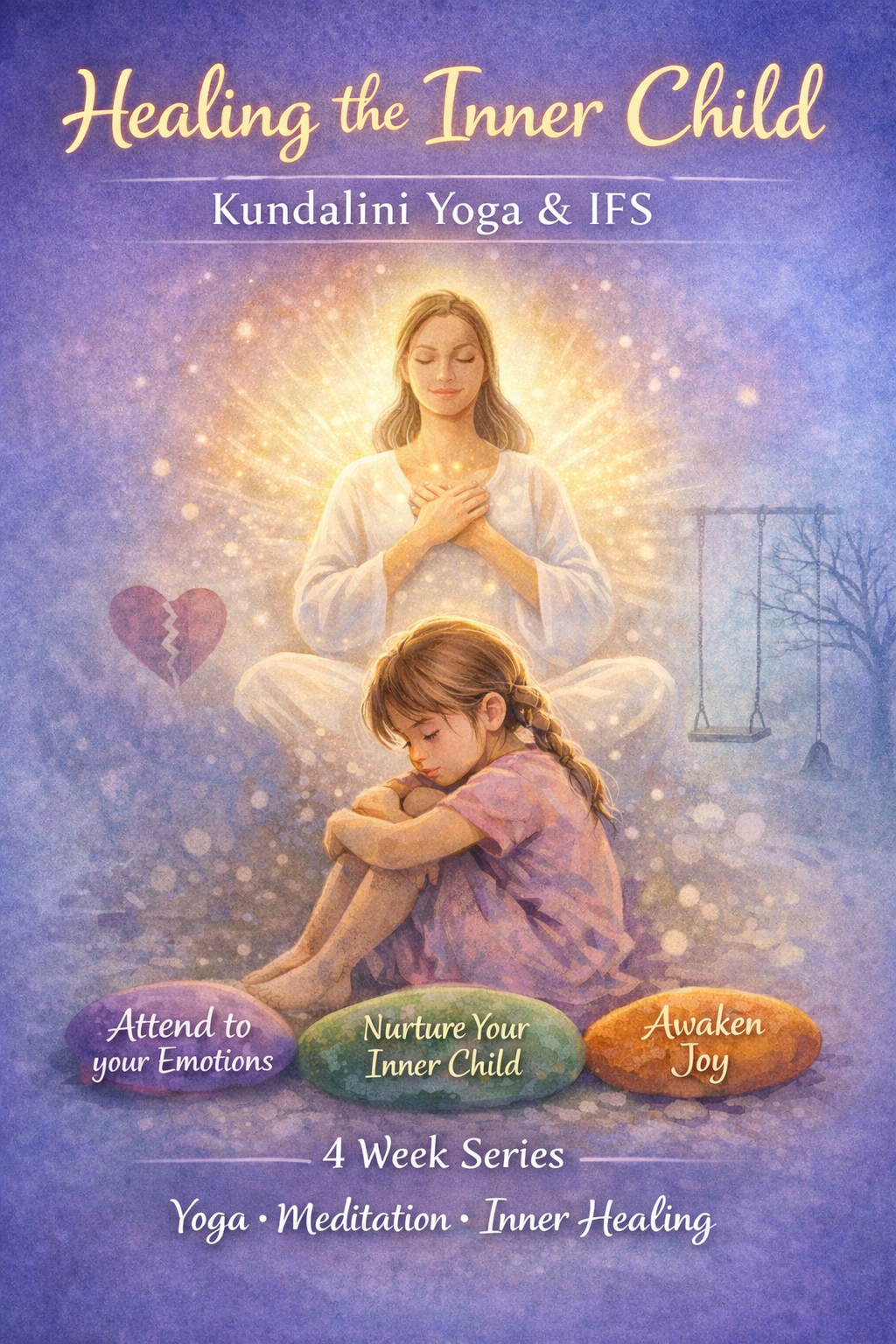 In each class, we'll do warmups, then practice a Kundalini kriya (yoga set) and/or meditation geared towards healing the emotions of fear, anger, shame, or grief/disappointment. We'll end each class with a Kundalini practice created for children to help encourage the feelings of joy, self worth, and playfulness. I'll also be sharing more about how to access and take care of your own Exiles, and there will be some time for journaling and occasional sharing.